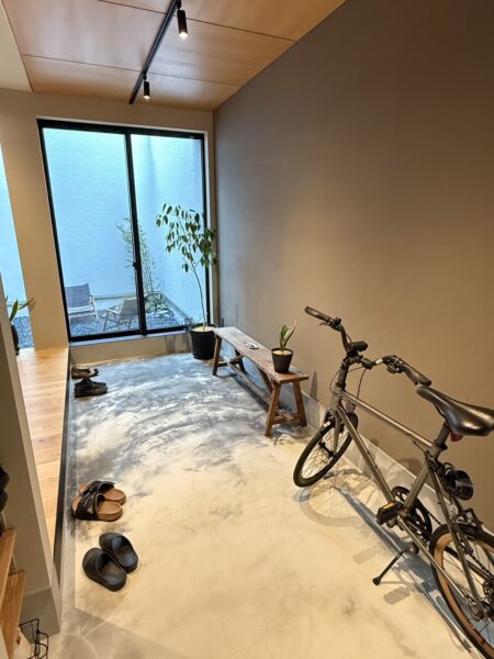 味わいのあるグレーの塗り壁に木の温かみがプラスされました。