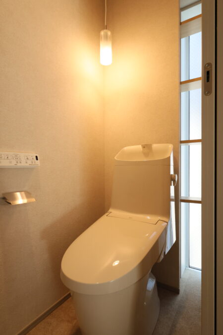 窓無しで間接照明を入れるパターンが多い中、トイレもほんわか明るくなり新しい手法です。