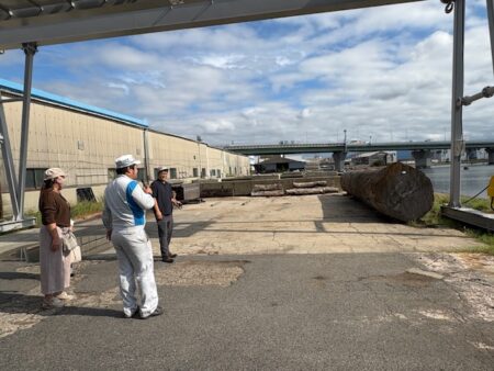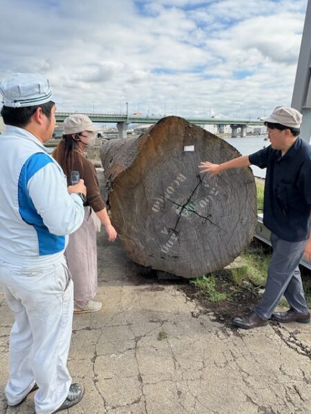 今は予めカットして輸送されるとの事で、このような丸太の状態で海外から運ばれてくる事は少なくなったそうです。