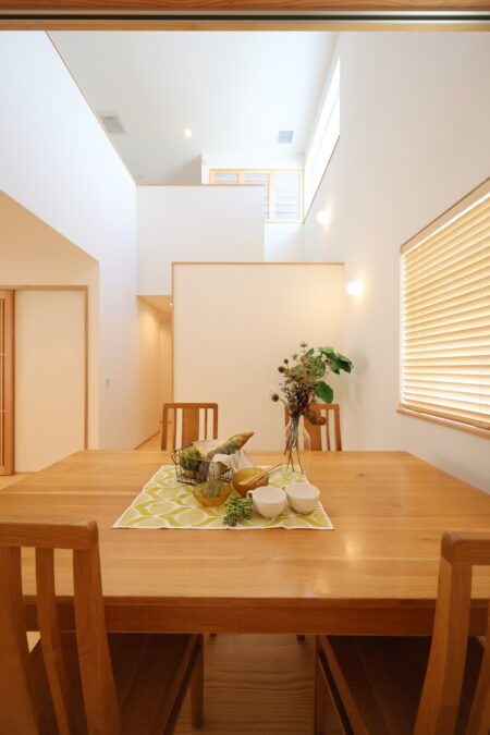 吹抜けを活かして、自然光だけでも十分に明るい空間となっています。