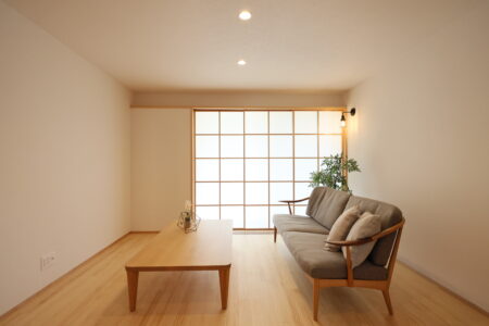 リビングの掃き出し窓には、造作引込造作障子を採用。