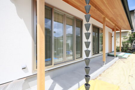 建物の外観も魅力的で、掃き出し窓から玄関まで続く軒下となっています。