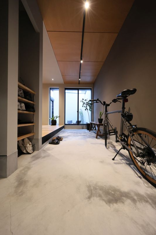 土間シューズクローク。ゴルフバック・自転車など大物収納可能。