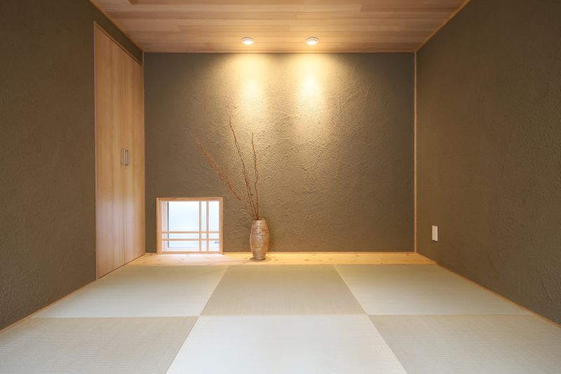 塗り壁の風合いが美しい、静けさに包まれた和の空間