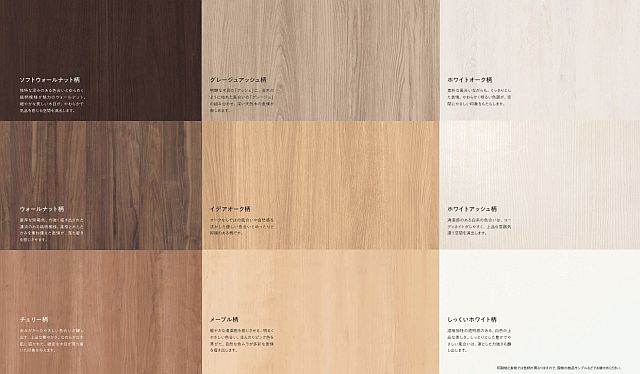 Panasonic、ベリティスはイメージが豊かに広がる多彩で美しい木目が魅力。 傷や汚れ、反りに強く、長く使いやすい耐久性も兼ね備えています。 9種類からお選びいただけますので、多彩なインテリア空間を実現します。